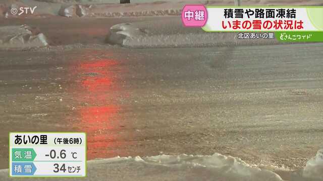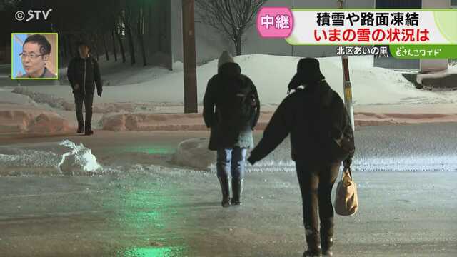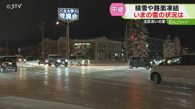 【中継】厳しい冷え込み 凍結した路面に雪積もる 水分量の多い雪…夜になって風も吹くように 札幌