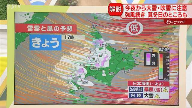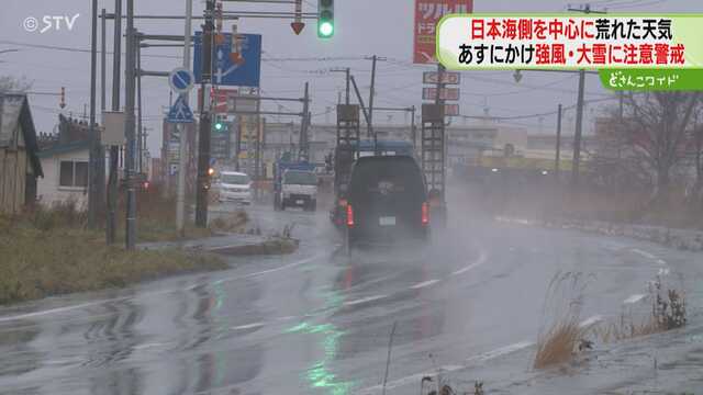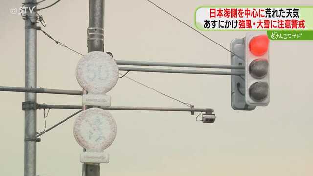 道路標識にも雪がべったり… 暴風警報のマチの様子 見通しの効かない吹雪となる可能性も 北海道