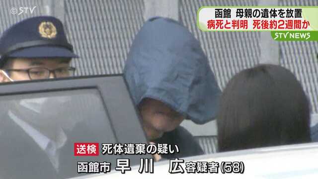 函館・母親の遺体自宅に放置 死体遺棄容疑で58歳男送検 母親は病死と判明…死後約2週間か