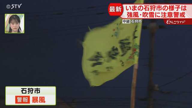 【中継】風で激しく揺れる旗 プラス気温も夜間は凍結注意 暴風警報続く石狩市