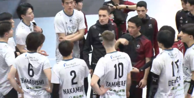 第2セットは今季から加入のメルト・タンメアル選手が強烈なアタックなどを決めて17-13と4点の差を広げます。しかし、サーブなどミスが目立ち、23-25とこのセットも落としてしまいます。