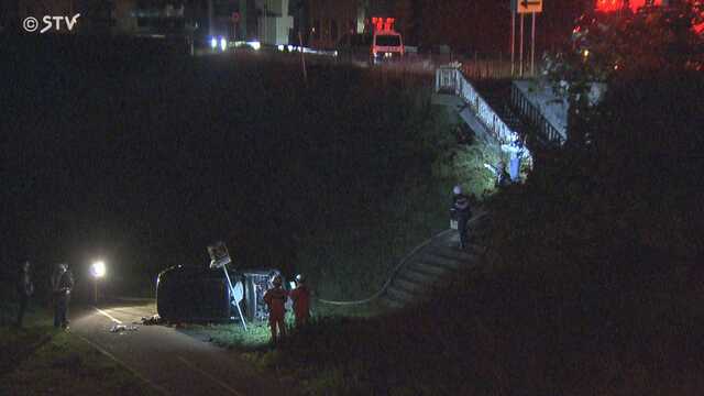 12日午前1時50分ごろ、「車両の単独事故。河川敷の階段部分からサイクリングロードまで車が落ちた」と目撃者から消防に通報がありました。