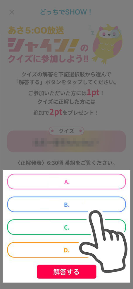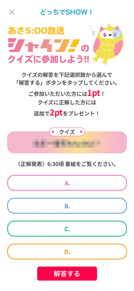 ご参加いただいた方には1pt!クイズに正解した方には追加で2pt