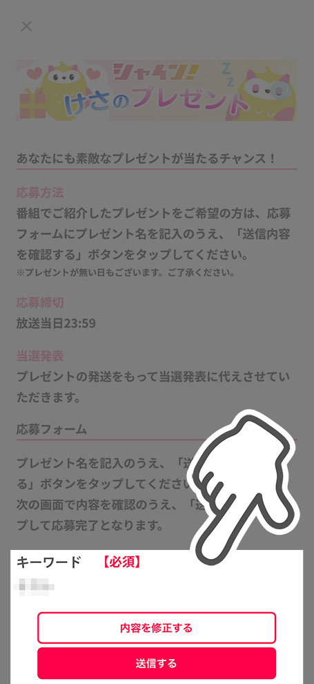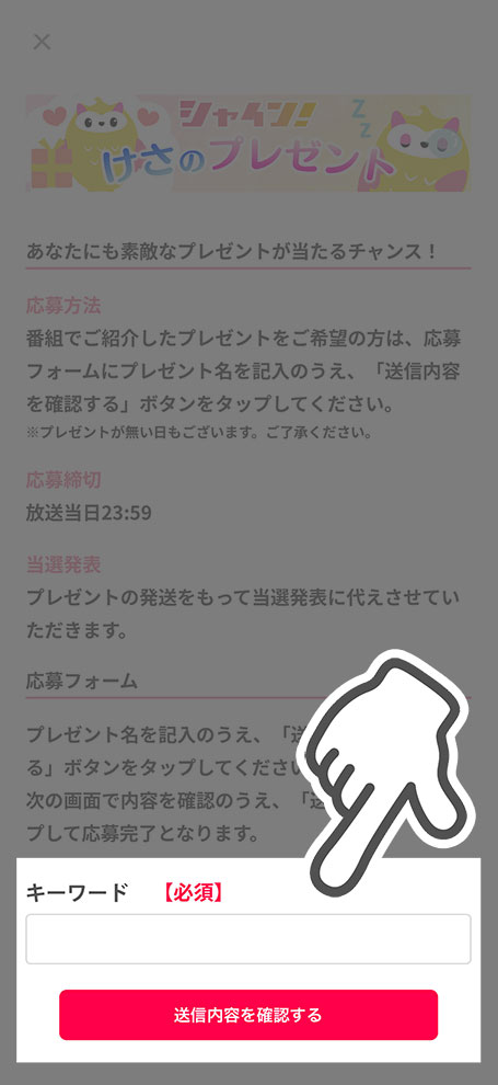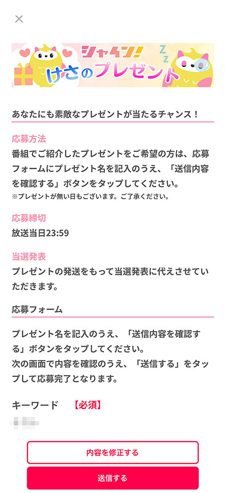 番組内で紹介したプレゼントをご希望の方は、アプリからご応募いただけます。