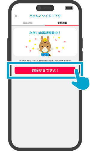 • 番組放送中にアプリを起動して、トップ画面下部にある【お絵かきですよ】ボタンをタップしてください。