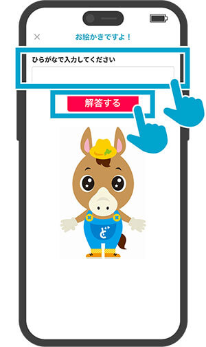 • 番組進行と同時に解答入力画面が表示されます。番組を視聴しながら、お絵かき挑戦者が何を描いているのか、解答をアプリの入力欄にひらがなで入力し、【解答する】ボタンをタップしてください。→エントリー完了です!