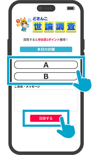 • 遷移した先の、どさんこ世論調査画面で本日のお題に回答してください。