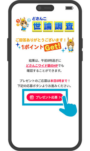 • 回答完了画面にある【プレゼント応募】ボタンをタップしてください。