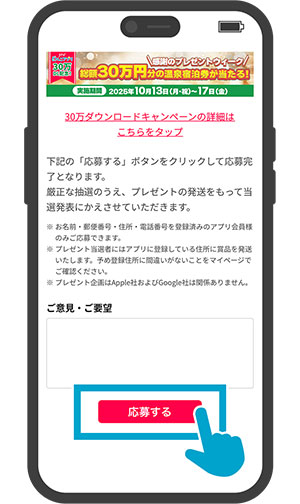 • 遷移した先のプレゼント応募画面で【応募する】ボタンをタップするとエントリー完了です!